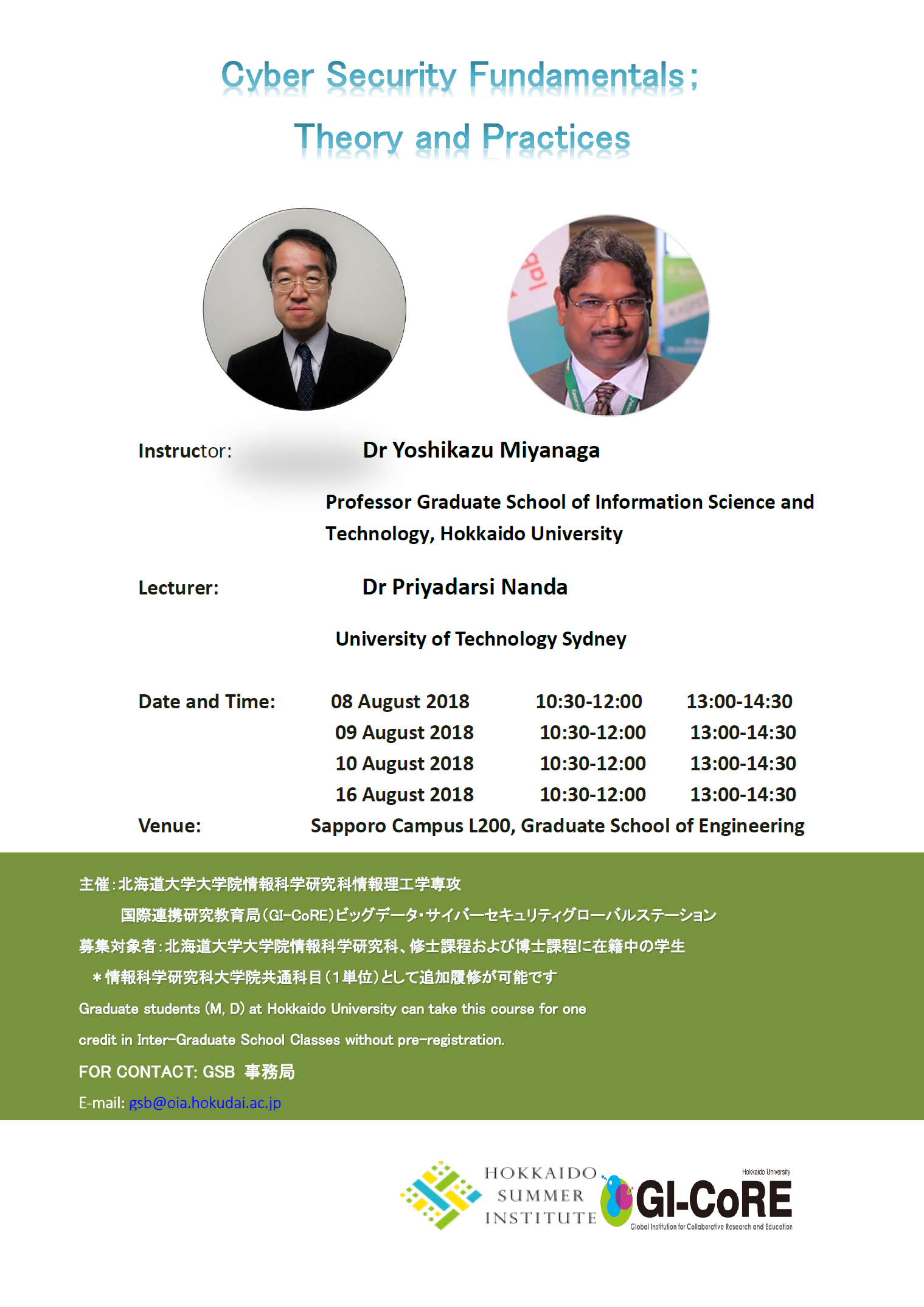 Details are available at Hokkaido Summer Institute (HSI) 2018 Official Website.