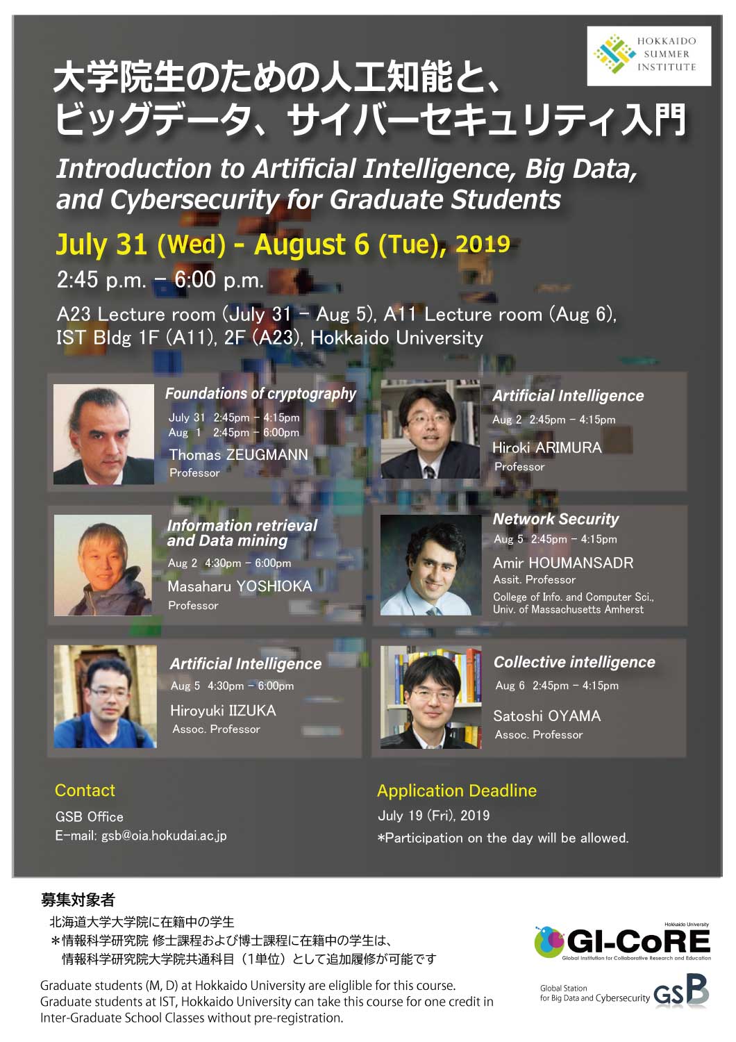 Details are available at Hokkaido Summer Institute (HSI) 2019 Official Website.