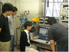 A. 電子スピンの制御とデバイスへの応用について研究しています。これまでの電子デバイスでは電子が持つ電荷の情報のみ利用していましたが、同時に電子のスピンの情報を利用することにより、新しい機能を持ったデバイスを実現することを目指しています。研究室に配属する際に、電子情報コース全研究室の説明会があるのですが、その説明を聞いて電子スピンの制御に興味をもち、現在の研究室を選びました。