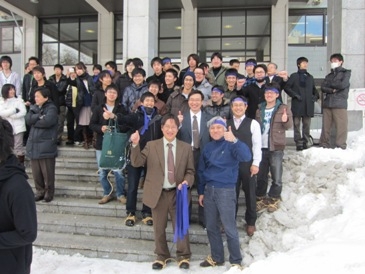 北工会主催の雪中綱引き大会が開催されます.靴にわらを巻いて,滑る足元と寒さに負けず,気合いで引っ張りましょう!教授も綱を引きます.