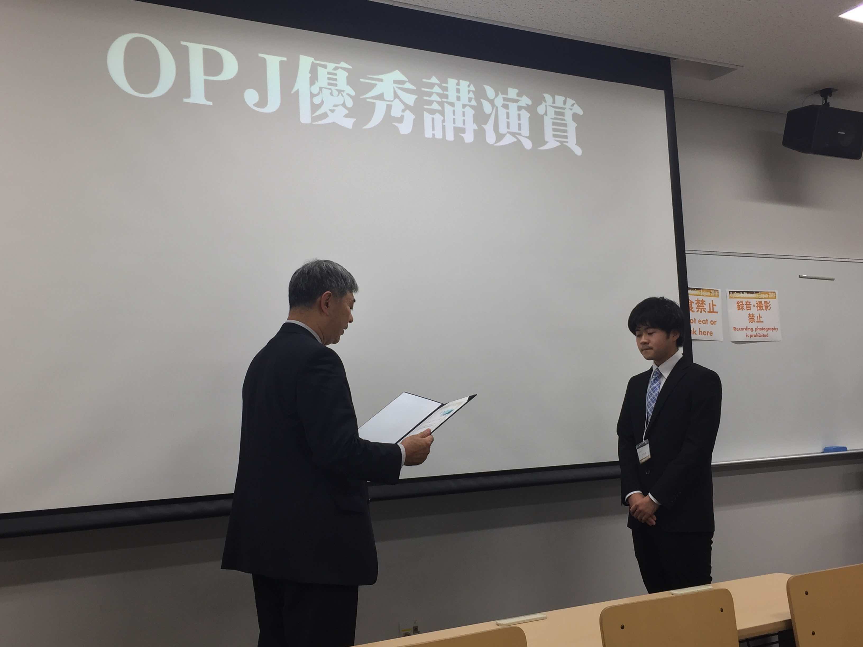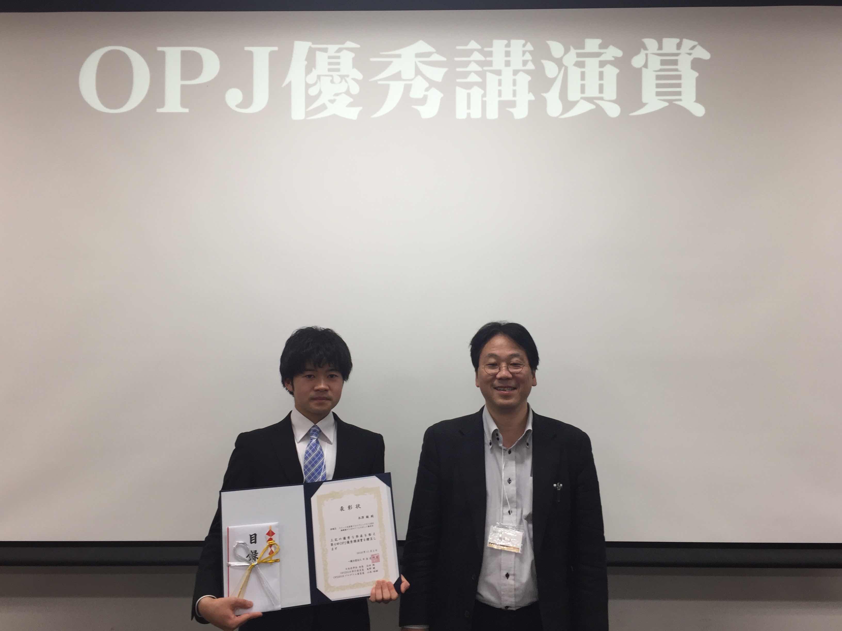 橋本教授と木澤君(M1)が参加しました木澤君がOPJ優秀講演賞を受賞しました