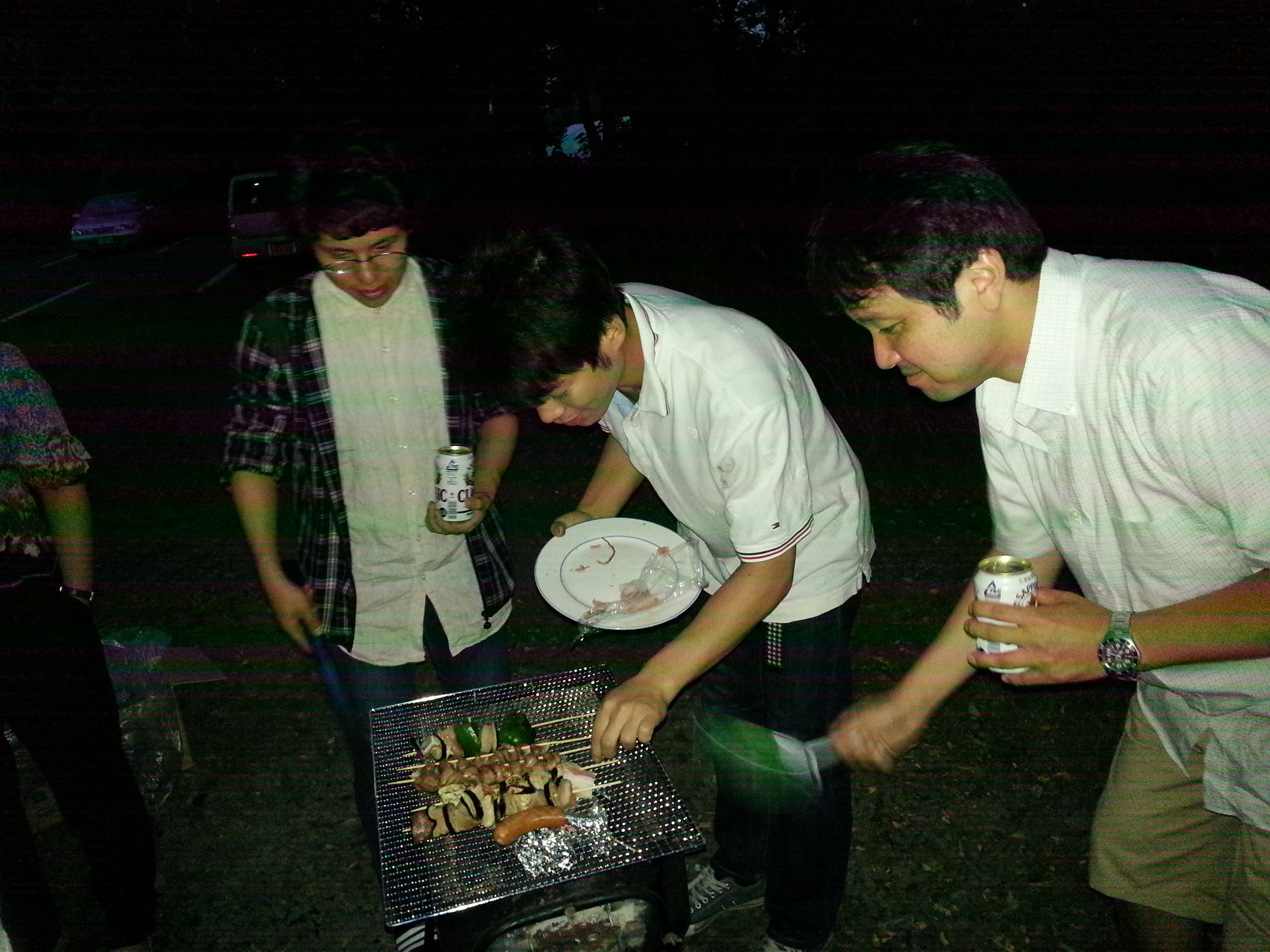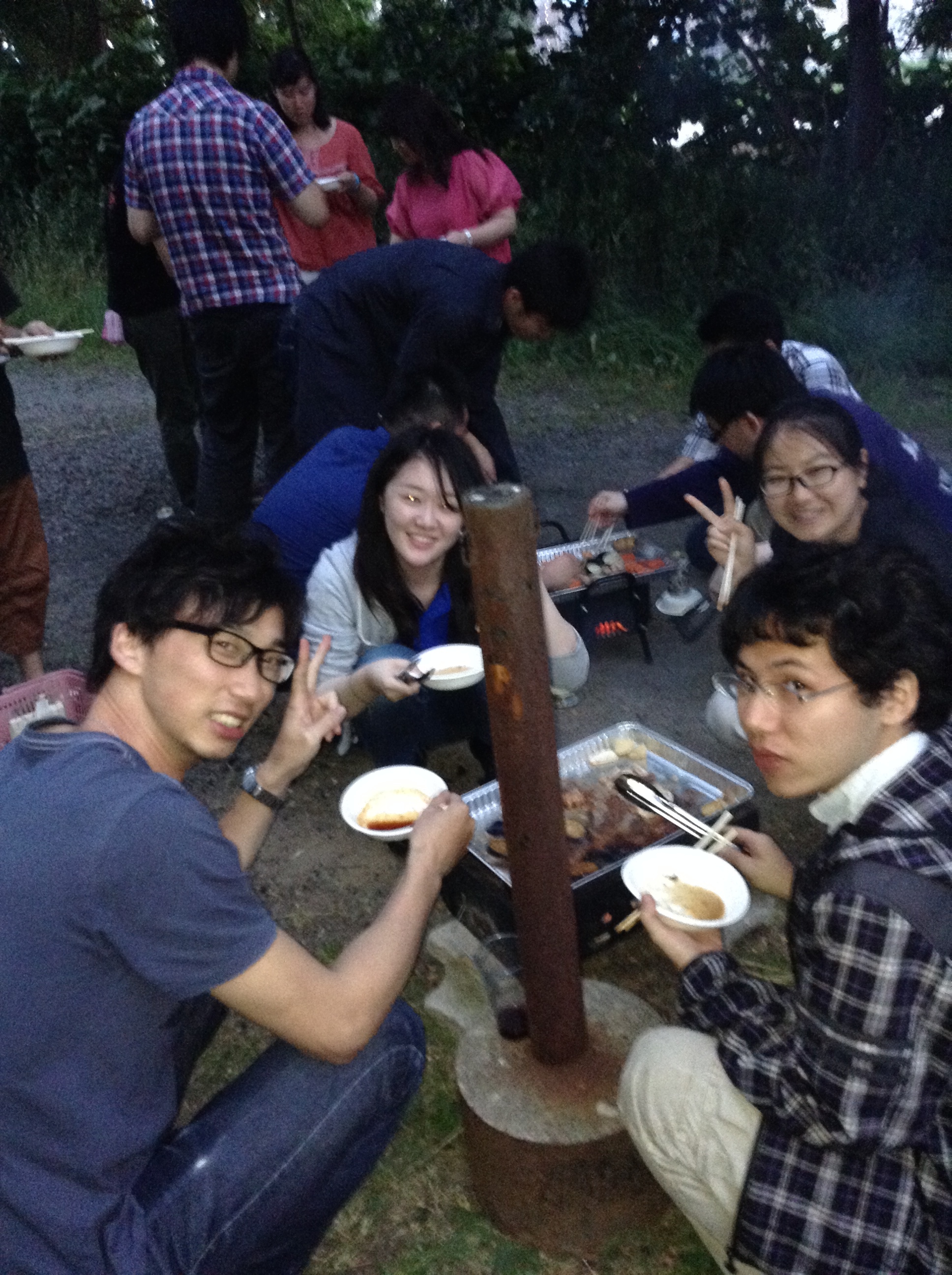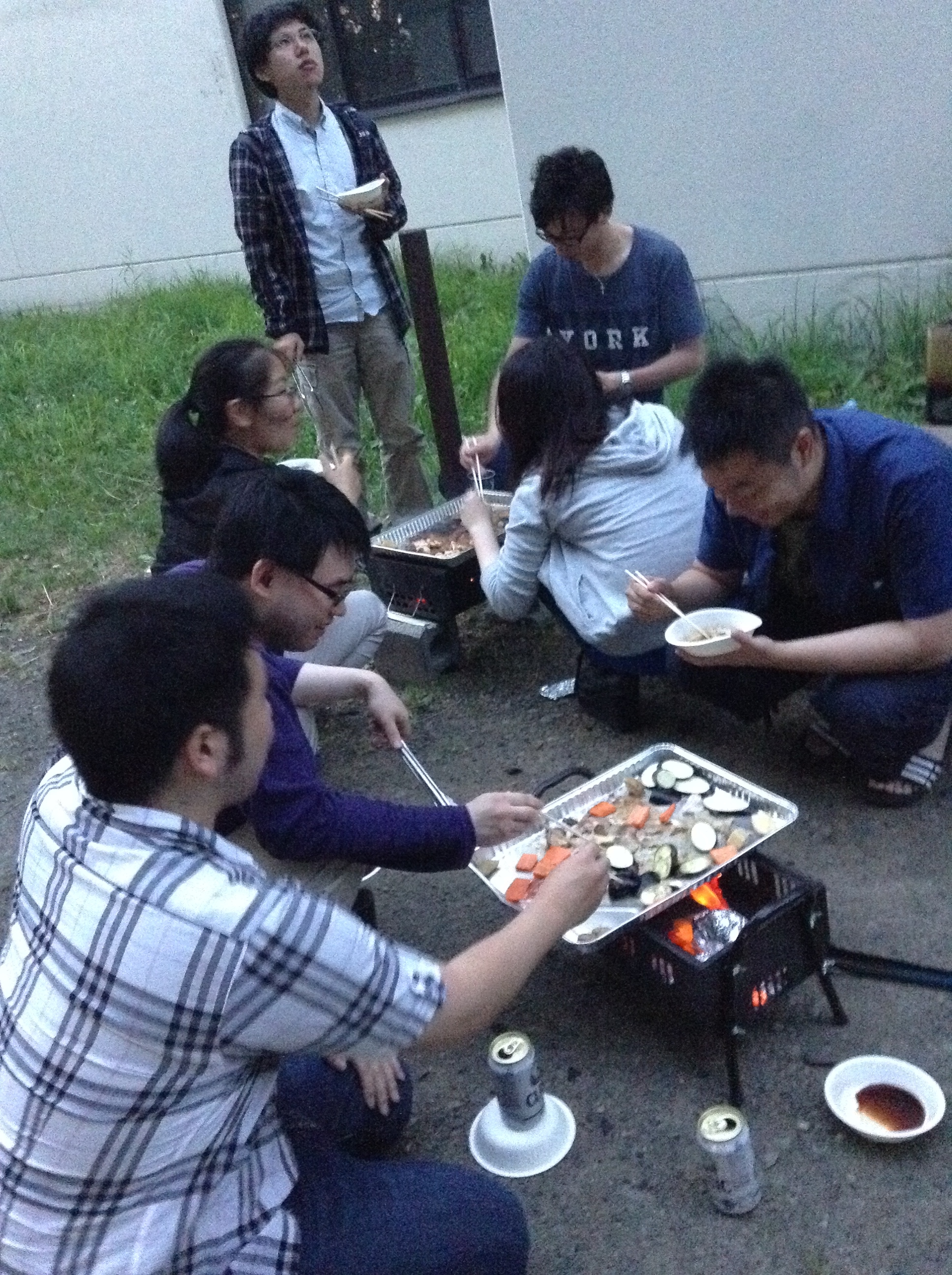 B4の初研究報告お疲れ様と、院試への激励ということでバーベキューを行いました。大きな串に刺さったお肉がおいしかったです。