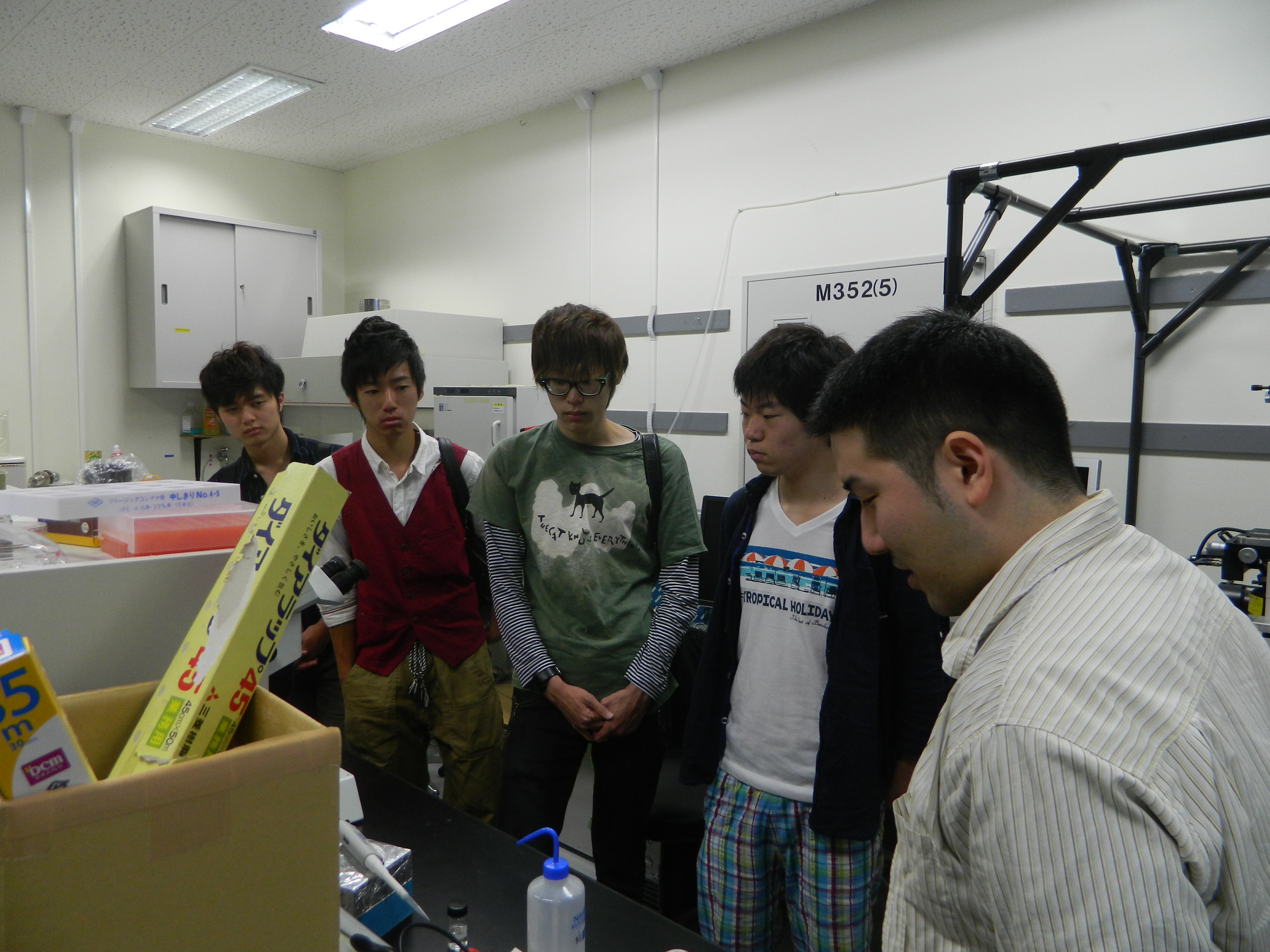 今年度生体情報コースに配属になったB2学生が当研究室見学をしました.