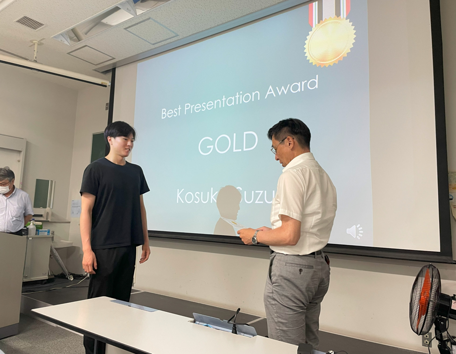 Four undergraduate students made oral presentation of their researches in English. Mr. Suzuki was awarded "Best Presentation Award -GOLD-".