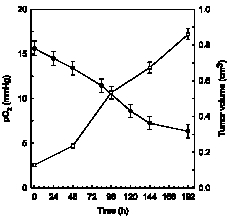 腫瘍の成長にともなって、腫瘍内の酸素分圧が低下していく様子を測定した例 (H. Fujii et al., Radiothr. & Oncol. 2008:86;354-360)